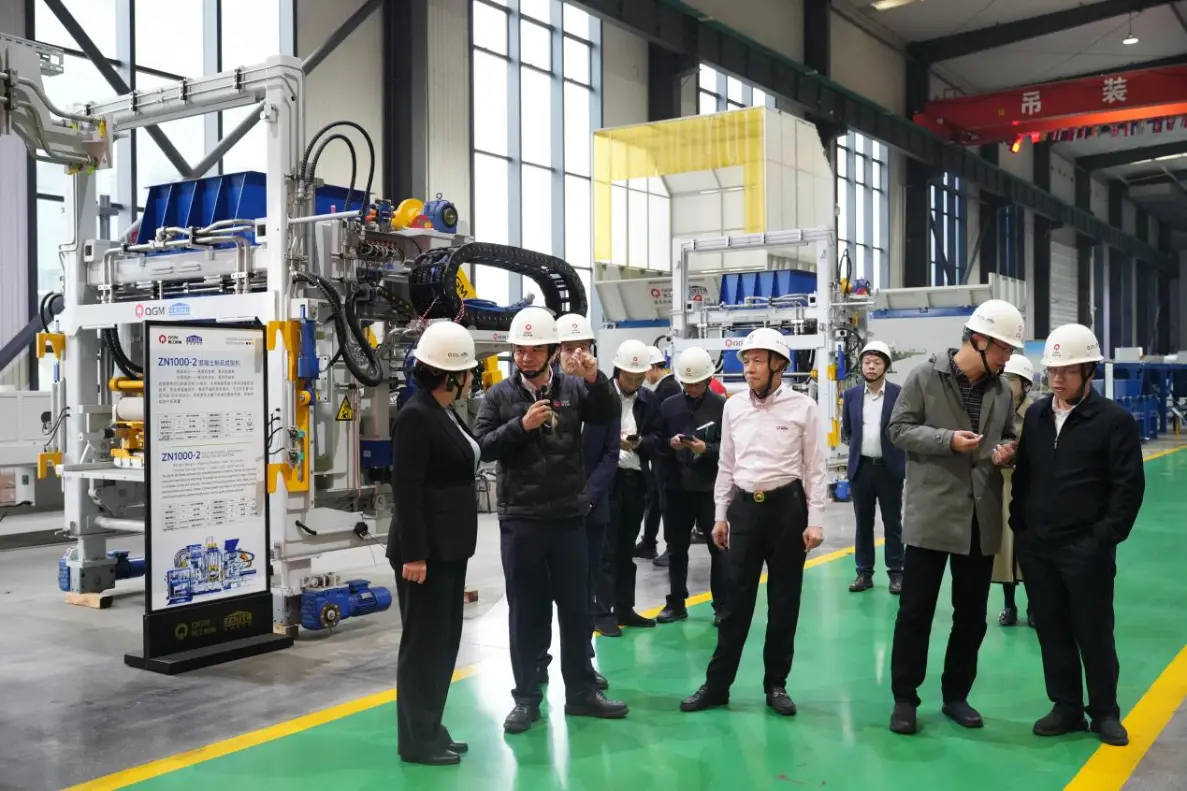 Tijdens het bezoek toerden Liu Min en zijn delegatie eerst door de tentoonstellingshal van Quangong Machinery Co., Ltd. om een uitgebreid inzicht te krijgen in de ontwikkelingsgeschiedenis van het bedrijf, het kerntechnologiesysteem, de indeling van de mondiale markt en innovatieve prestaties op het gebied van apparatuur voor groene bouwmaterialen. Als toonaangevende onderneming in de bouwmaterialenindustrie richt Quangong Machinery Co., Ltd. zich al lang op onderzoek, ontwikkeling en productie van hoogwaardige apparatuur voor het maken van stenen en complete oplossingen, waardoor een systematische lay-out en continu innovatievermogen wordt gevormd op het gebied van intelligente productie, het gebruik van vaste afvalbronnen en technologische toepassingen voor groene bouwmaterialen.