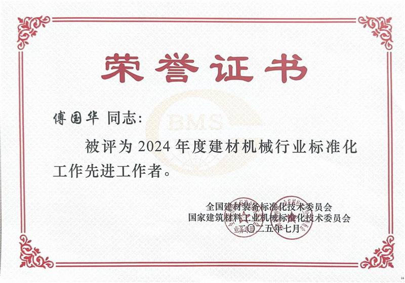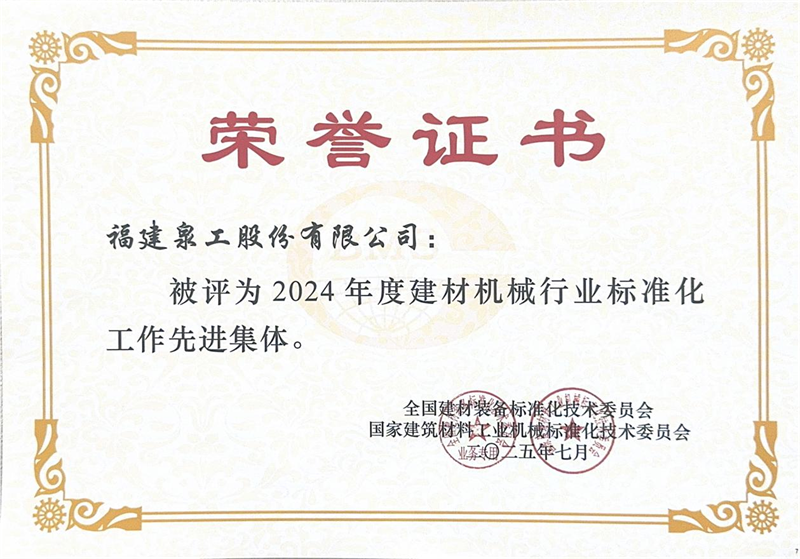 Tijdens de tegelijkertijd gehouden lovende zitting ontving Quangong Machinery Co., Ltd de titel van "Advanced Collective in Standardization Work in the Building Materials Machinery Industry in 2024", en de plaatsvervangend algemeen directeur van het bedrijf, Fu Guohua, kreeg de titel van "Advanced Worker in Standardization Work in the Building Materials Machinery Industry in 2024".