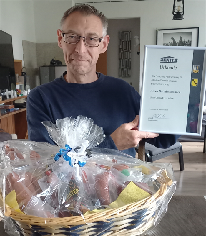 Ook de heer Markus Türk, die 47 jaar oud is, viert zijn 30-jarig jubileum. Hij voltooide een driejarige opleiding tot industrieel bediende bij Zenit en is momenteel hoofd van de afdeling verkoop van reserveonderdelen. Jarenlang heeft hij efficiënte after-salesondersteuning geboden aan wereldwijde klanten met solide zakelijke vaardigheden en verantwoordelijkheidsgevoel, waardoor de hoogwaardige werking van het servicesysteem van het bedrijf werd gewaarborgd.