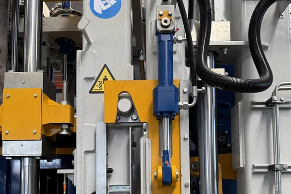 7Druk op Hoofdvergrendeling Dit mechanische vergrendelingsmechanisme bestaat uit zeer sterke vergrendelingsblokken, een wigvormige perskop en dubbelwerkende hydraulische cilinders. Tijdens het ontvormen drijven de cilinders de vergrendelingsblokken aan om de perskop radiaal vast te klemmen, waardoor een mechanische impasse ontstaat. De mal wordt vervolgens onder constante druk losgelaten, waardoor elastisch terugveren en microbewegingen effectief worden geëlimineerd, waardoor scherpe steenranden, gladde oppervlakken en een sterk verbeterde productkwalificatie worden gegarandeerd.