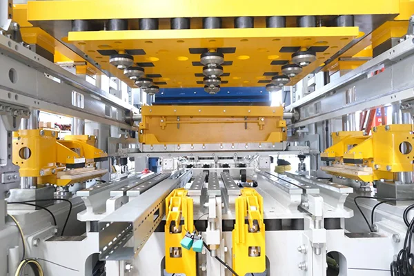 2Automatisch snel schimmelwisselsysteem Het automatische snelle matrijswisselsysteem van Zenith is gebaseerd op de gecoördineerde werking van meerdere apparaten, waardoor intelligente, snelle en nauwkeurige matrijsvervanging mogelijk is. Nadat de matrijs naast de hoofdmachine is getransporteerd, wordt deze door een hefsysteem op de matrijswisselunit geplaatst. Het systeem voltooit automatisch het matrijswisselproces zonder handmatige handelingen, positionering of vergrendeling.