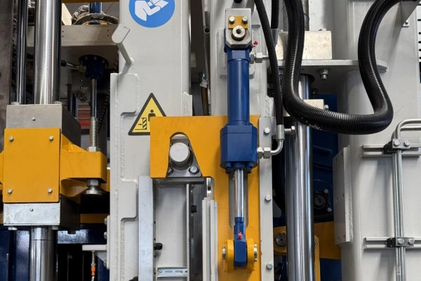 9Druk op Hoofdvergrendeling Dit mechanische vergrendelingsmechanisme bestaat uit zeer sterke vergrendelingsblokken, een wigvormige perskop en dubbelwerkende hydraulische cilinders. Tijdens het ontvormen drijven de cilinders de vergrendelingsblokken aan om de perskop radiaal vast te klemmen, waardoor een mechanische impasse ontstaat. De mal wordt vervolgens onder constante druk losgelaten, waardoor elastisch terugveren en microbewegingen effectief worden geëlimineerd, waardoor scherpe steenranden, gladde oppervlakken en een sterk verbeterde productkwalificatie worden gegarandeerd.